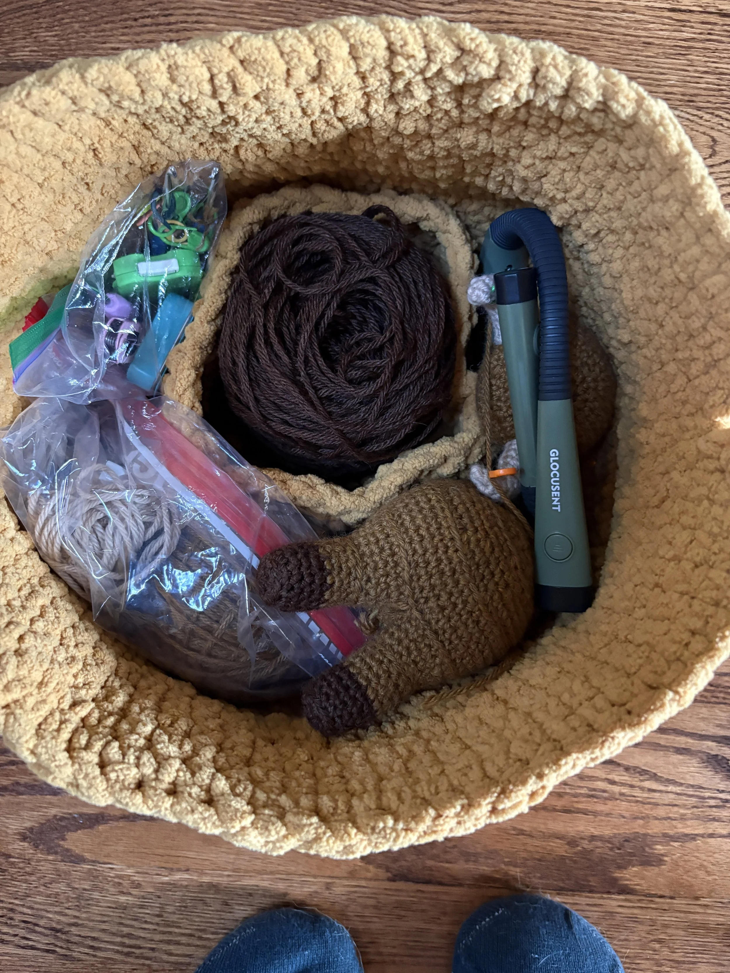 Basket with Skein and other Crochet Supplies