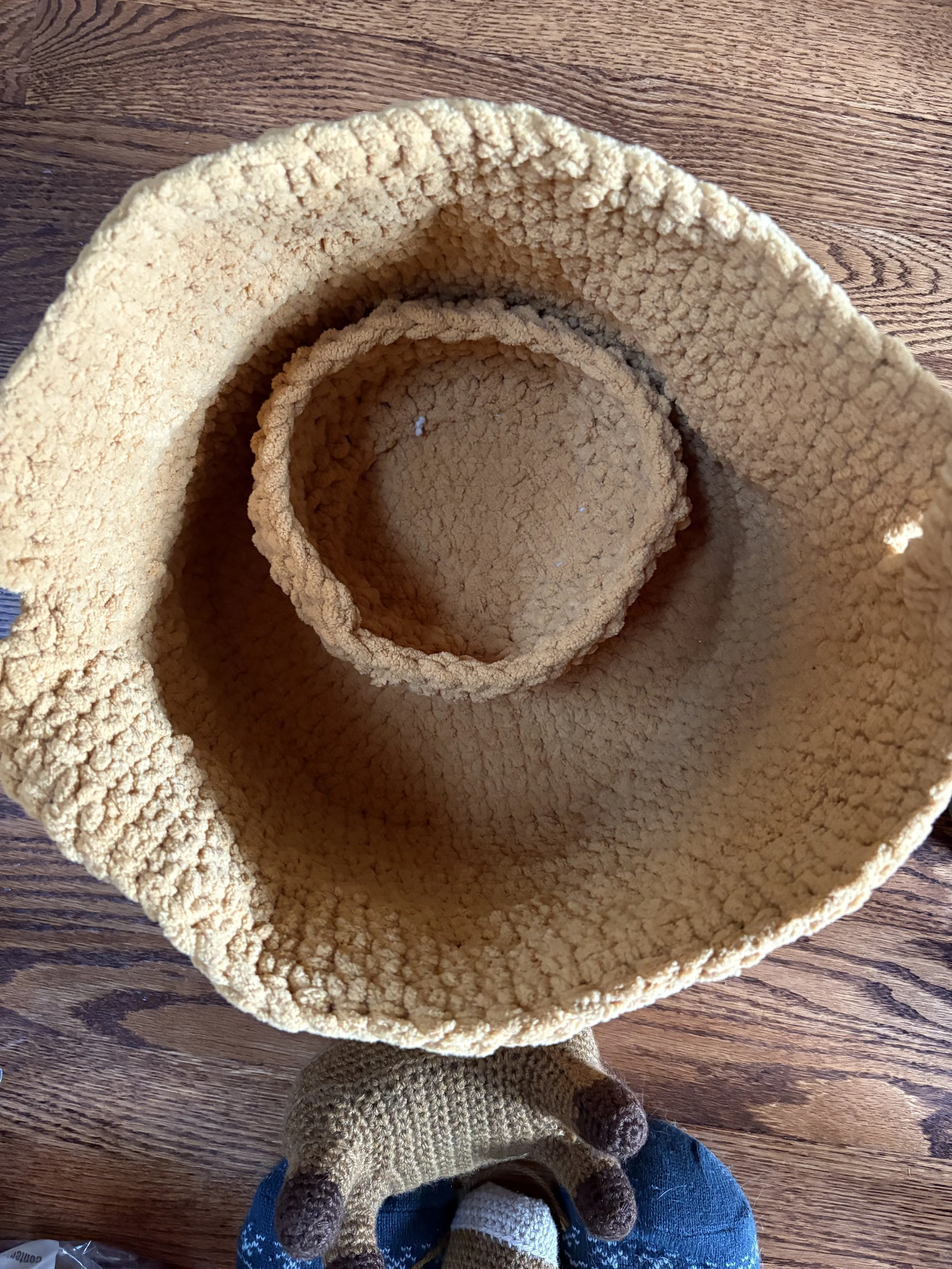 This project is worked in the round with single crochets and chains.