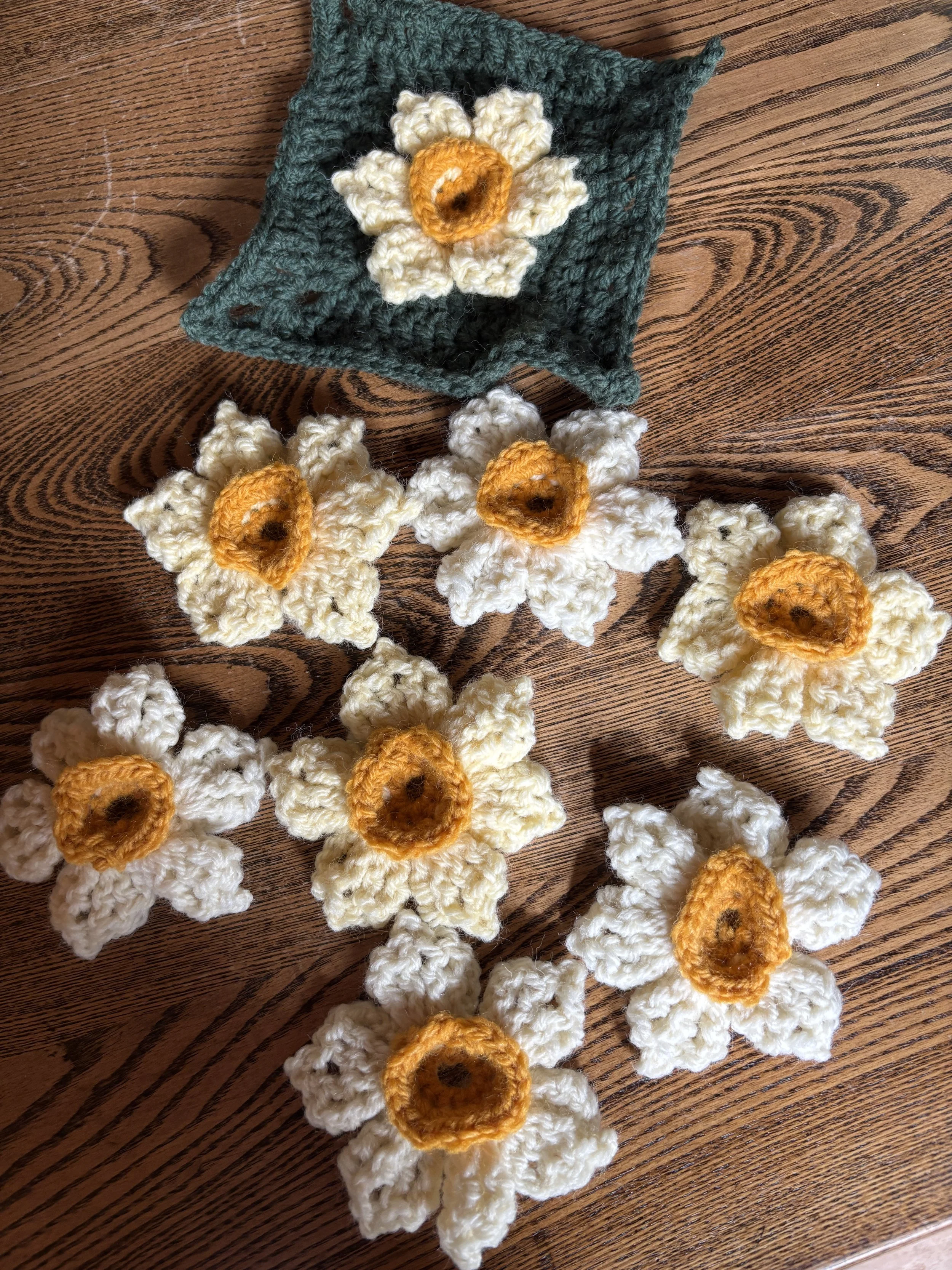 Daffodil Granny Square: https://www.passionatecrafter.com/crochet-daffodil-flower-granny-square-pattern/